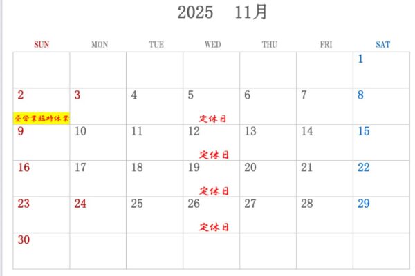 11月の営業予定です。